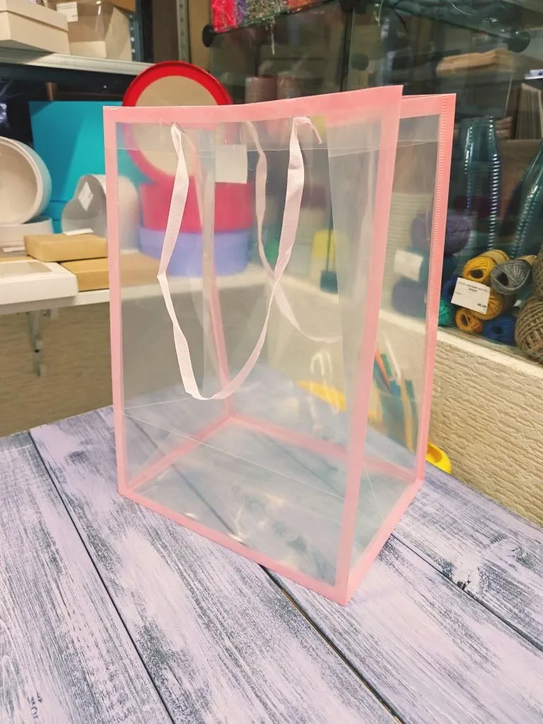 Пакет с окном на липучке ассорти 35*25*15 бол, окантовка розовая