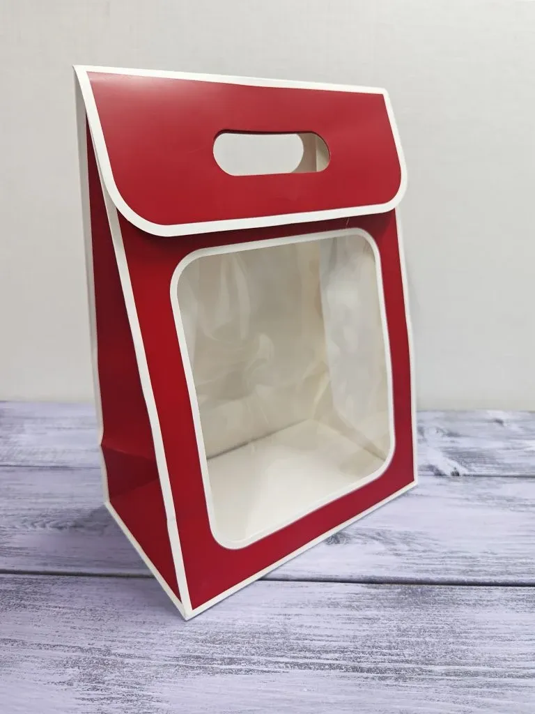 Пакет с окном на липучке красный с бел окант 30*21,5*13 сред