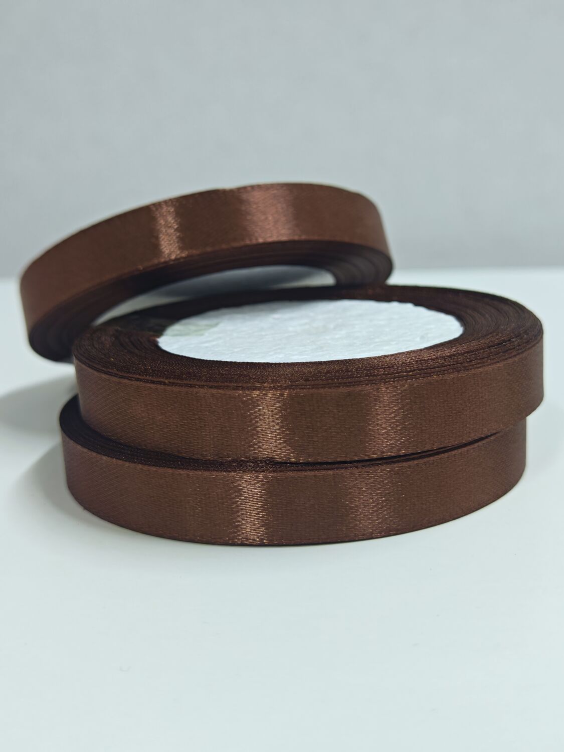 Атласная лента 12 мм длина 22,5м, шоколадный