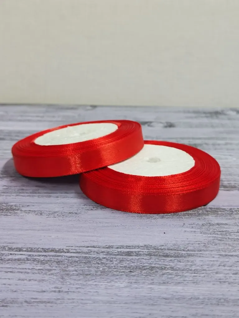 Атласная лента 12 мм длина 22,5 м, красный