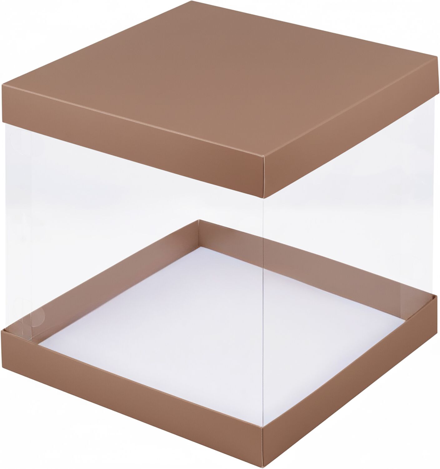 Коробка под торт с прозрачными стенками 23,5*23,5*22 мокко