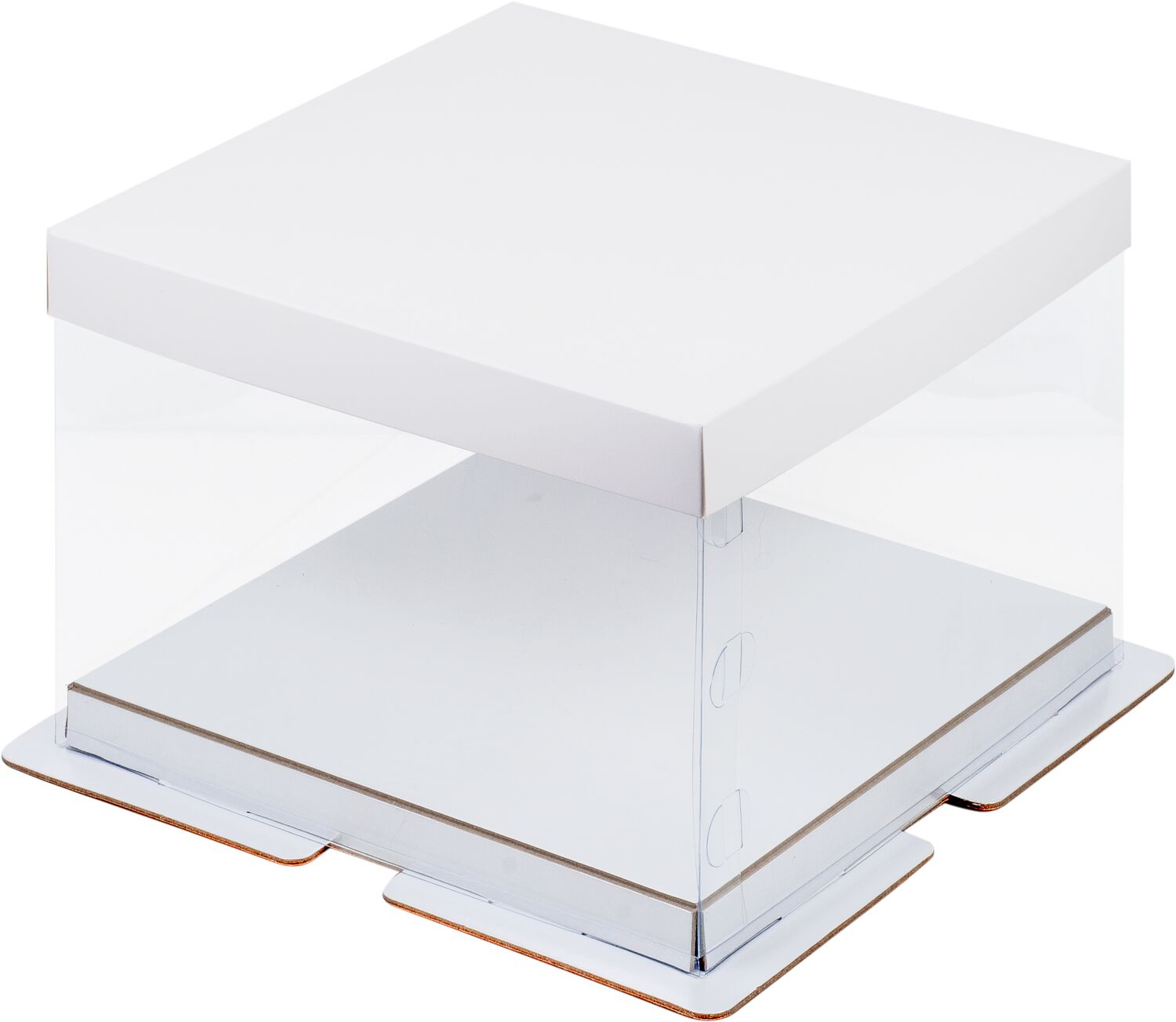 Коробка под торт ПРЕМИУМ с пьедесталом прозрачная 26*26*18 белая