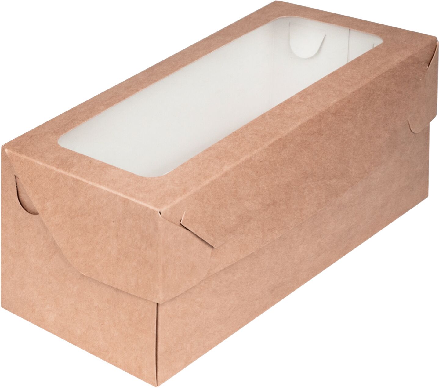 Коробка под 3 капкейка с окном прямоугольным 24*10*10 крафт