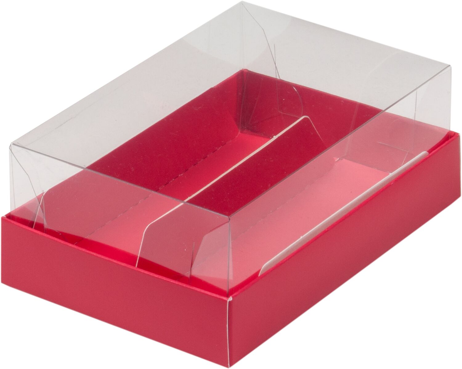 Коробка для 2 эклеров и пирожных с прозрачным куполом 13,5*9*5, красная