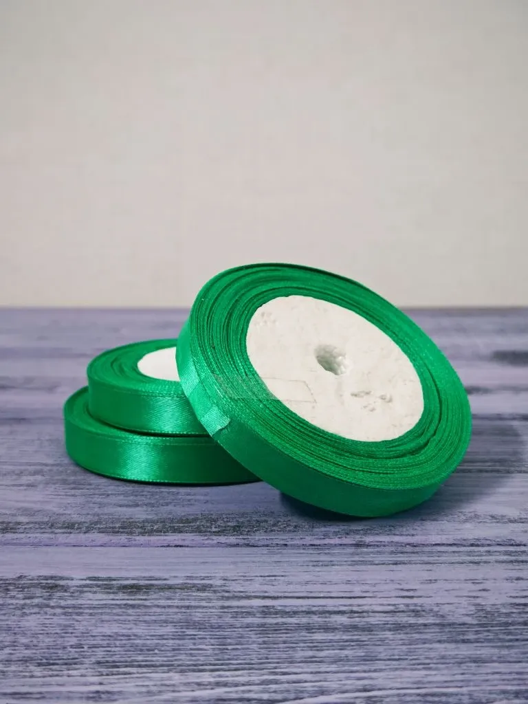 Атласная лента 12 мм длина 22,5 м зеленый