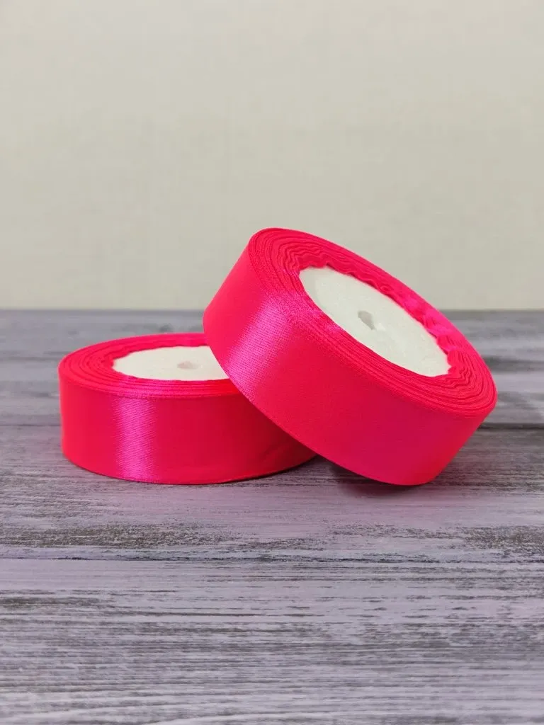 Атласная лента 25мм длина 22,5 м ярко-розовая