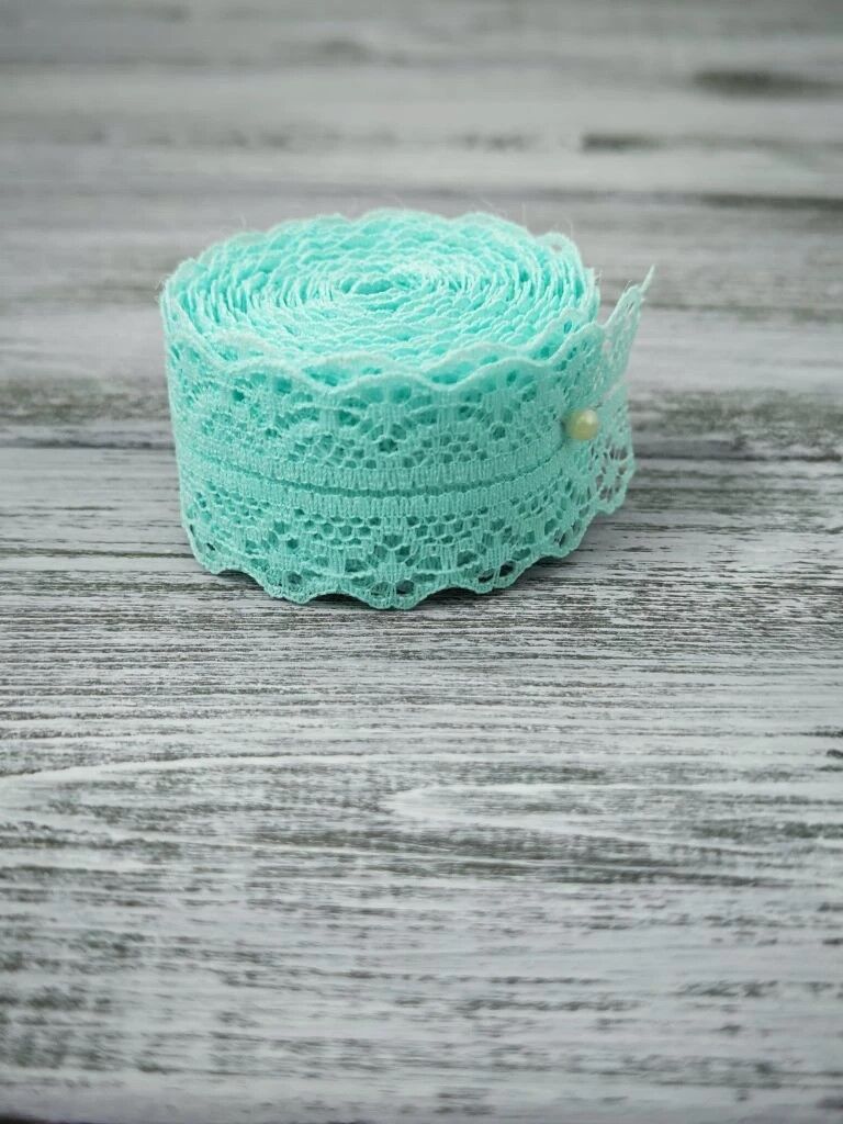 Лента кружевная 3,5см, 5м, голубая
